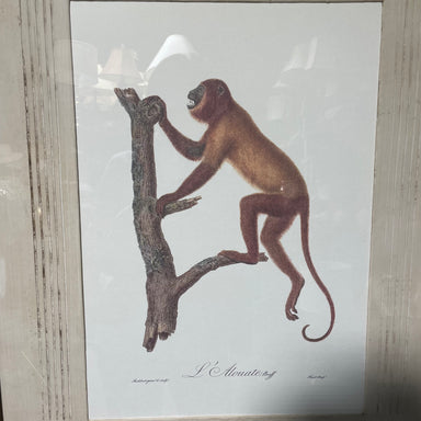 Description: Amen Wardy "L'Alouate" Audebert Monkeys Hand Colored Watercolor Print Condition: In good condition - frame has scratches/scuffs Detail...