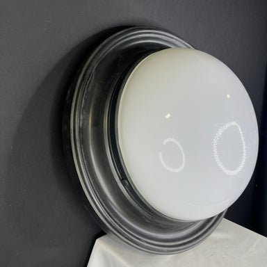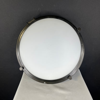 Description: Industrial 1-Light Oil Rubbed Bronze with Milk Glass Porthole Style Flush Mount Ceiling Pendant Condition: FairDetails: Heavy scuffing...