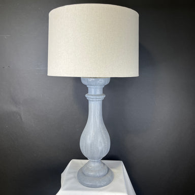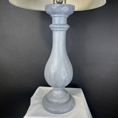 Description: Restoration Hardware Grey Stone Wash Baluster with Shade Table Lamp Condition: Great!Details: not real stone made to look stone