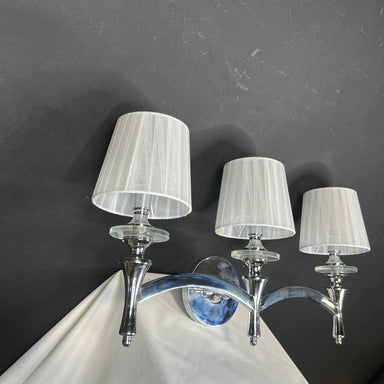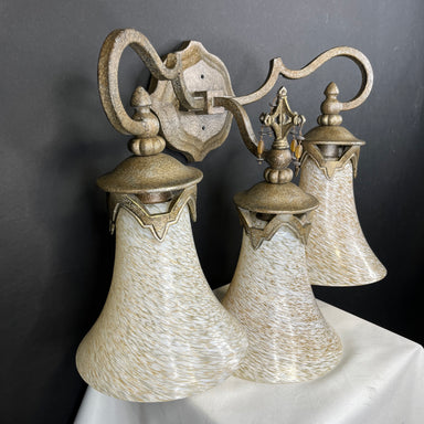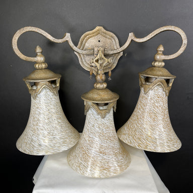 Description: Regency Style 3-Light Silver/Beige with Glass Shades Wall Sconce Condition: goodDetails: beaded detailing