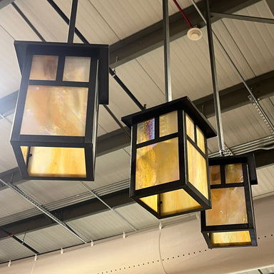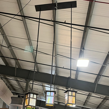 Description: Arroyo Craftsman 3-Light Mission Style Bronze and Honey Opal Glass Ceiling PendantCondition: GoodDetails: Heavy wear and scratches on ...