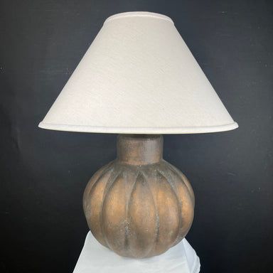 Description: Masterpiece Patin Copper Painted Plaster Pumpkin with Shade Table Lamp Condition: goodDetails: