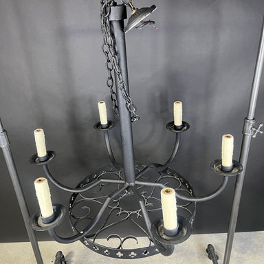 Description: Romance Revival 6-Light Black Painted Metal Heart Candelabra Chandelier Condition: GoodDetails: some chipping in the pain, could use a...