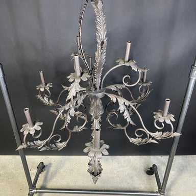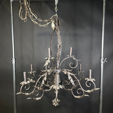 Description: Gothic Style 10-Light Bronze Painted Metal Floral Leaf ChandelierCondition: GoodDetails: one down light
