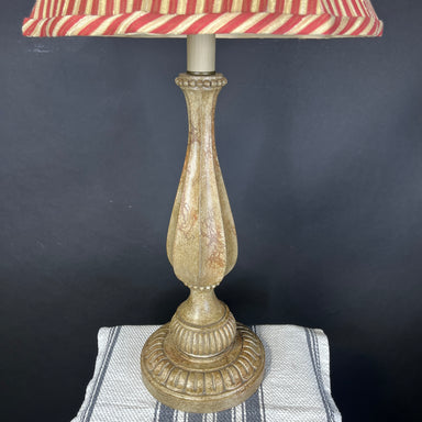 Description: Traditional Ornate Cream Crackle with Shade Table Lamp Condition: goodDetails: fun striped shade