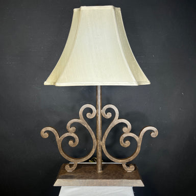 Description: Dana Creath Designs Bronze Iron Scroll with Shade Table Lamp Condition: goodDetails: some wear on base