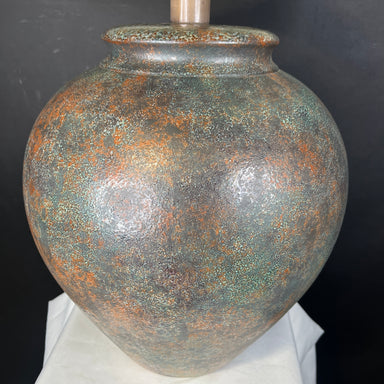 Description: Casual Lamps Green and Rust Textured Metal Vase with Shade Table Lamp Condition: great!Details: like new
