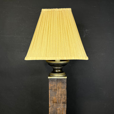 Description: Uttermost Dark Finish Wood Block and Brass Column with Shade Floor Lamp Condition: GoodDetails: Scratches and chips on base