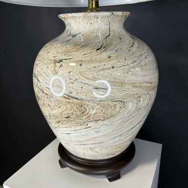 Description: Modern Earth-tone Faux Marble with Shade Table Lamp Condition: goodDetails:
