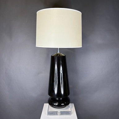 Description: Visual Comfort Parisienne Black Reactive Glaze Ceramic with Shade Table Lamp Condition: GoodDetails: Some shade wear and stains
