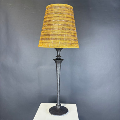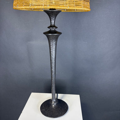 Description: Giacometti Style Hammered Iron with Beaded Shade Table Lamp Condition: GreatDetails: