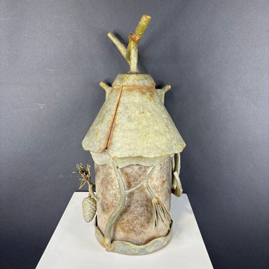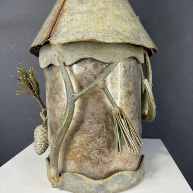 Description: Rustic 1-Light Olive Iron Branch Pinecone with Mica Outdoor Wall Sconce Condition: GoodDetails: