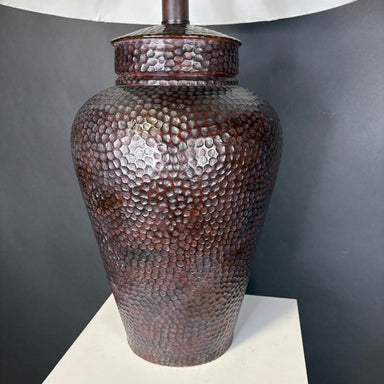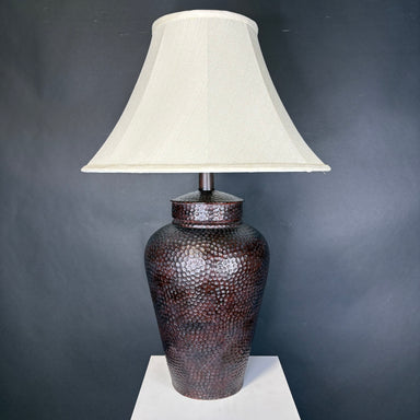 Description: Pacific Coast Lighting Dark Brown Hammered Resin Urn with Shade Table Lamp Condition: GreatDetails: