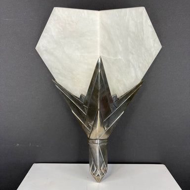 Description: French Art Deco 2-Light Ornate Silver with Alabaster Shade Wall Sconce Condition: GreatDetails: wear consistent with age