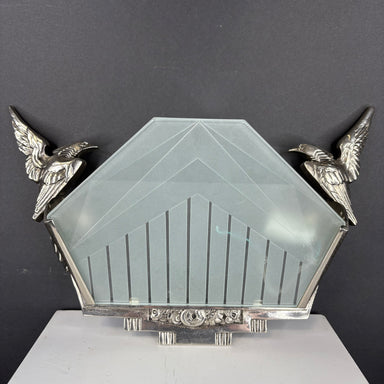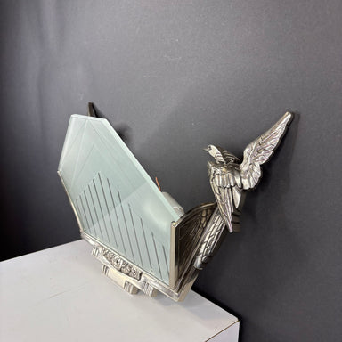 Description: Art Deco 1-Light Silver Birds with Frosted Glass Wall Sconce Condition: Great!Details: