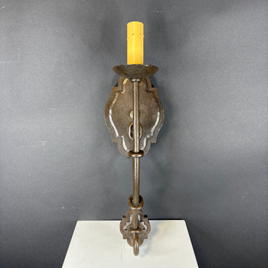 Description: Myers and Company Gothic Revival 2-Light Brown Painted Solid Iron Wall Sconce Condition: Great!Details: