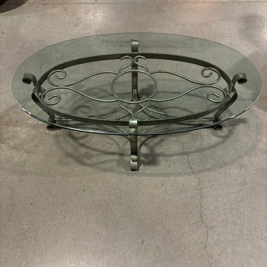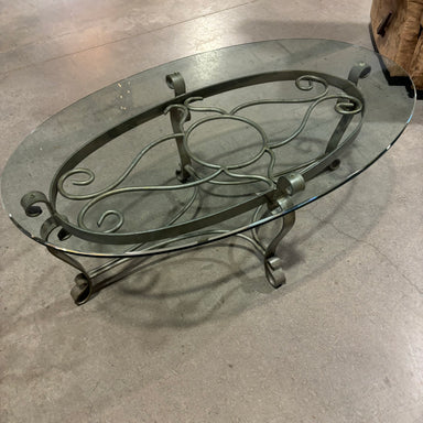 Description: Ornate Iron Base with Oval Glass Top Coffee TableCondition: Some Glass Scratches
