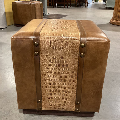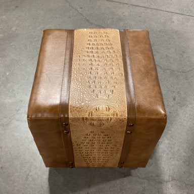 Description: Croc Style Leather with Banding & Nailhead Ottoman Condition: Great, Slight Wear