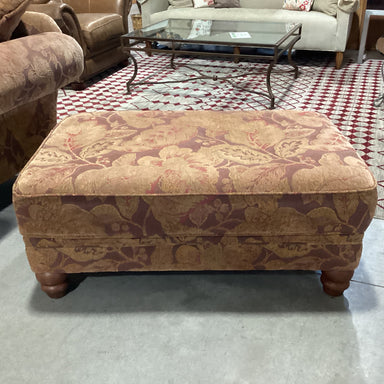 Description: Bernhardt New Vintages Gold Brown Raised Floral OttomanCondition: Upholstery Wear