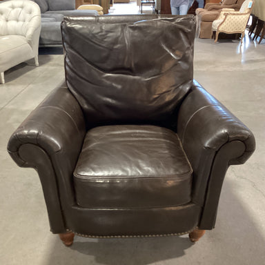 Description: Lee Industries Dark Brown Leather Nailhead Club Chair Condition: Some Seat Wear & Scratches
