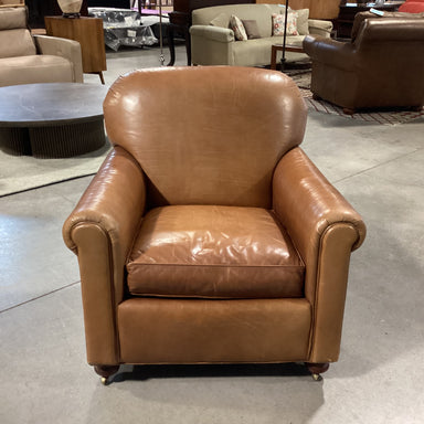Description: Lee Industries Leather with Front Casters Club ChairCondition: Great, Slight Wear