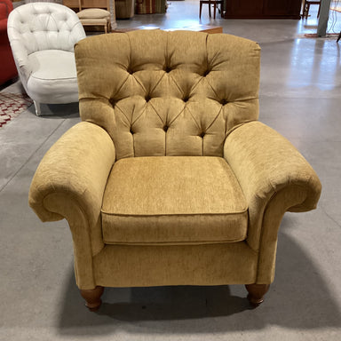 Description: Best Chairs Co. Golden Mustard Tufted Roll Arm ChairCondition: Some Wear