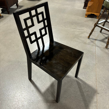 Description: West Elm Dark Finished Asian Style Overlapping Squares ChairCondition: Wear & Finish Scratches
