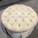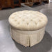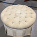 Cream Gold Pattern Ribbon Tufted Round Skirted Ottoman 34" Diameter x 20"
