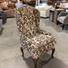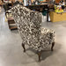 Custom Cream Brown Scroll Floral with Carved Legs Highback Wing Chair 30"x 30"x 50"