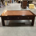 Distressed Finish Carved Wood & Wicker Raffia Woven Inset Top 6 Drawer Coffee Table 55"x 33.5"x 18"