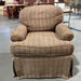 J Banks & Stanford Furniture Gold Red Blue Green Checker Woven Upholstered Swivel Chair 33"x 36"x 31"