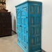 Rustic Carved Pine Distressed Blue 2 Door with Shelves 1 Drawer Armoire 51"x 25"x 80"