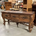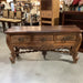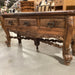 Rustic Western Hand Carved Solid Wood with Ornate Trestle 3 Drawer Accent Table 72"x 24"x 35.5"