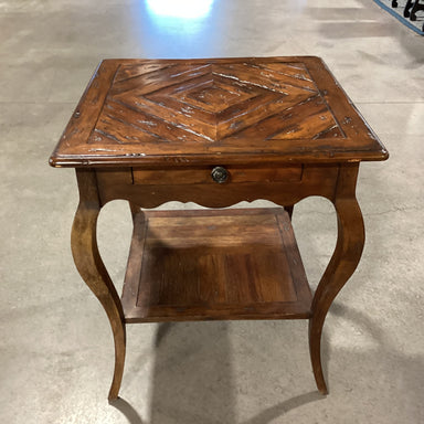 Description: Finished Distressed Wood with Diamond Accent Top 1 Drawer End TableCondition: Great, Few Scratches, Solid Wood