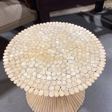 Description: Handmade Wood & Bottle Top Design Accent TableCondition: Wood Wear & Scratches