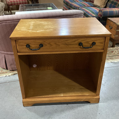 Description: Ornate Carved Finished Solid Wood 1 Drawer Side Pullouts Trestle Base End TableCondition: Great, Solid Custom Carved Piece
