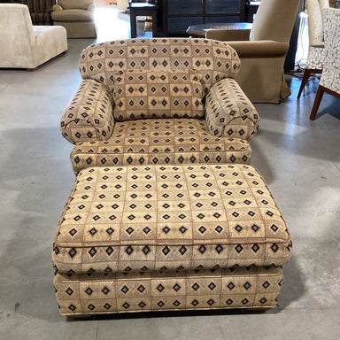 Description: Touchstone Brown Black Diamond Pattern with Ottoman Oversized ChairCondition: Some Wear & FadingDetails: Ottoman 37"x 27"x 17.5"