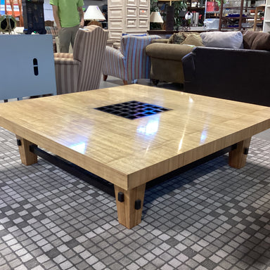 Description: Berman Rosetti 2 Tone Finished Wood with Grid Center Zen Coffee TableCondition: Some Wear & Scratches