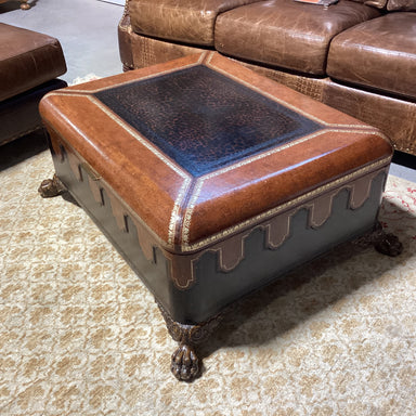 Description: Maitland Smith Leather with Gold Stamping & Carved Clawfoot TrunkCondition: Some Wear, Few Leather & Finish ScratchesDetails: ...