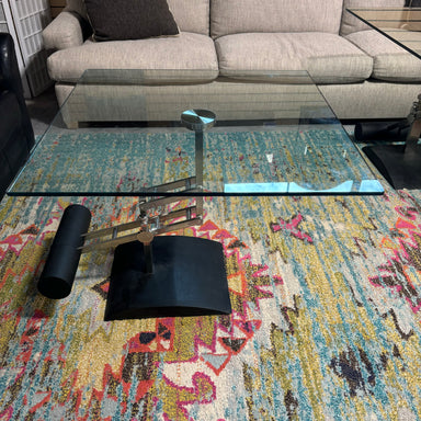 Description: Black & Stainless Steel Adjustable Height Glass Top End TableCondition: Good, Slight Chipping on Base