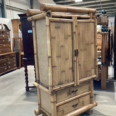 Description: Vintage Bamboo & Rattan 2 Door 2 Drawer Armoire Condition: Great, Slight Wear Details: Similar on Used Sites $1,300.00