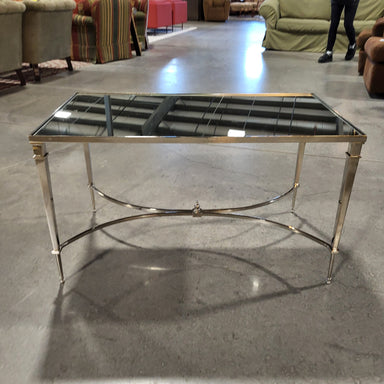 Description: Art Deco Regency Style Silver Mirrored Coffee Table Condition: Good, Heavy Mirror Scratches