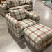 Green Rust Blue Woven Plaid with Ottoman Chair 38"x 36"x 25"
