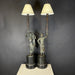 PAIR Aged Bronze Man and Woman Figurines Candlestick with Shade Table Lamp 10”x 7”x 38”