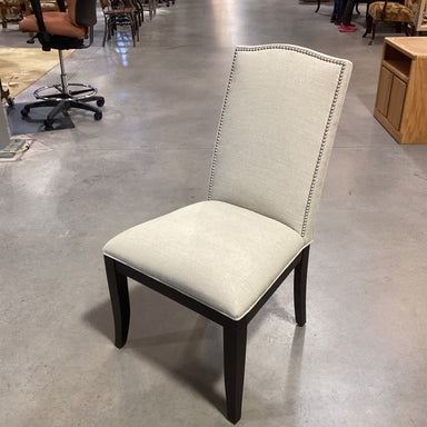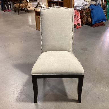Description: Crate & Barrel Colette Linen Nailhead & Dark Finish Wood ChairCondition: Slight Wear, Few Scratches