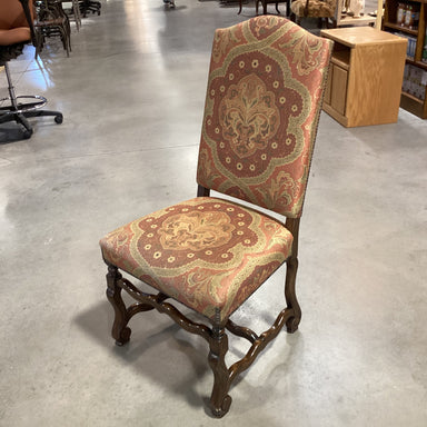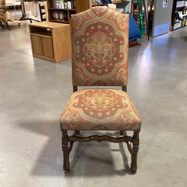 Description: Burnt Orange Gold Paisley Floral & Carved Wood ChairCondition: Some Wear
