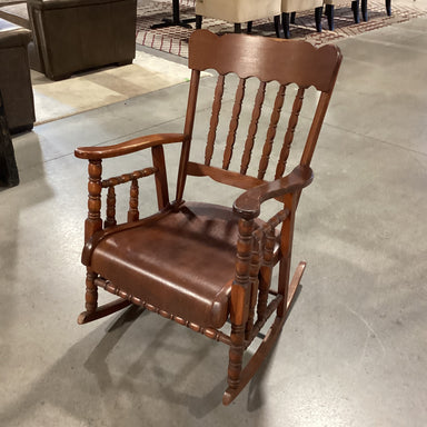 Description: Vintage American Style Carved Wood Rocking ChairCondition: Wear & Scratches