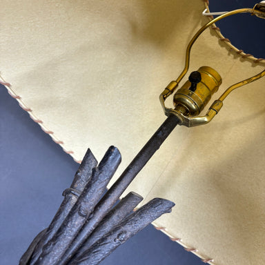 Description: Rustic Forged Iron Branch with Shade Table Lamp Condition: goodDetails:
