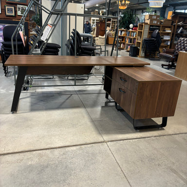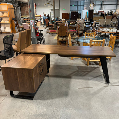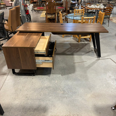 Custom Dark Finish Wood Veneer & Black Steel Base 2 Piece "L" Shaped with Storage Desk 84"x 60"x 31"