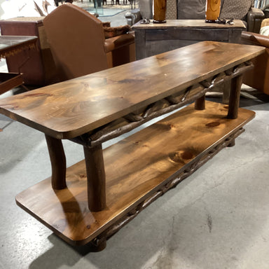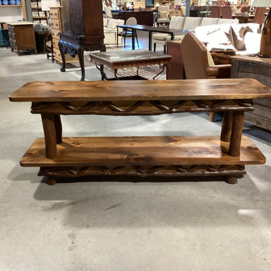 Description: Wood with Log Design Detail 2 Tiered Sofa TableCondition: Some Wear & Scratches